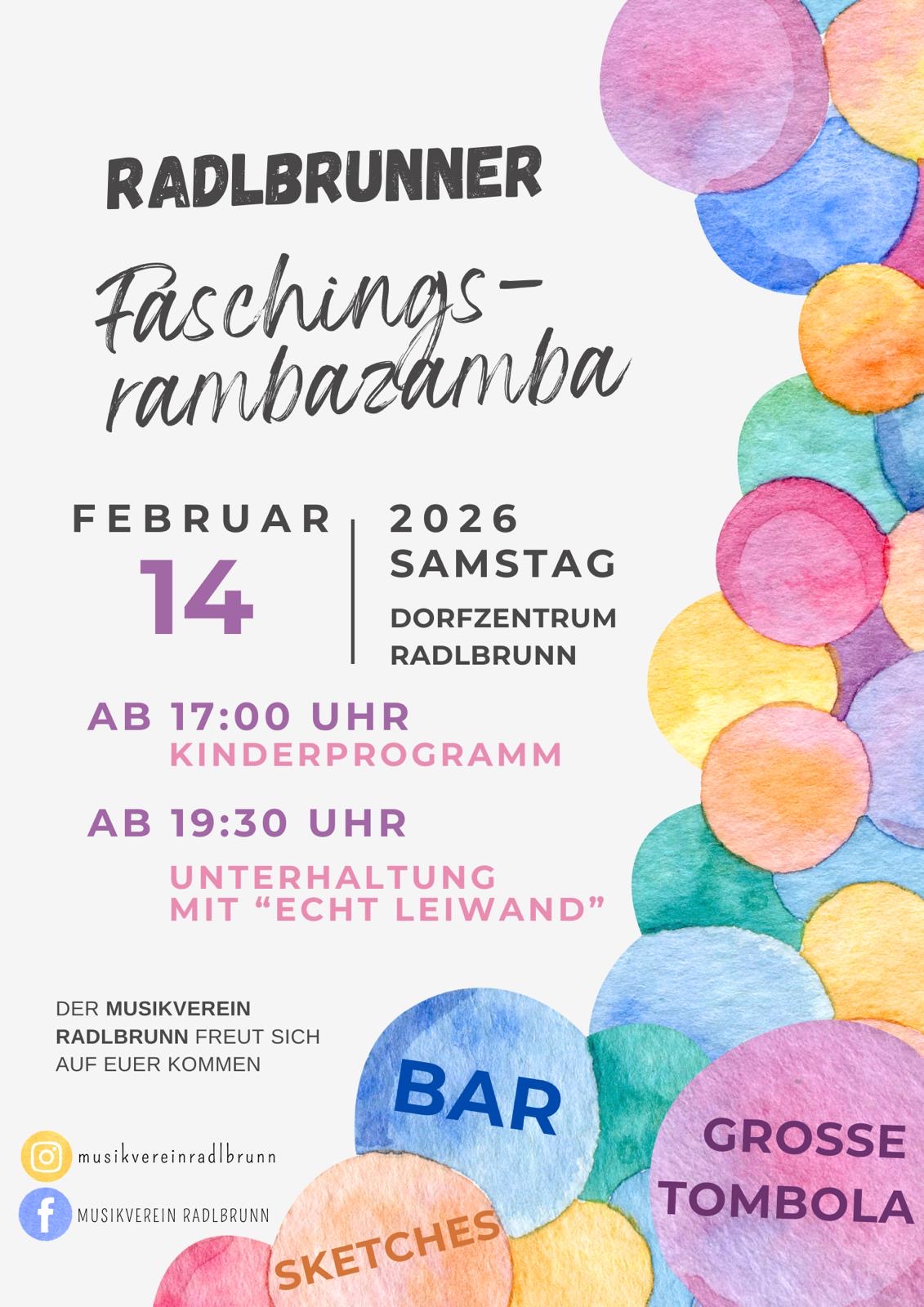 Am 10.Februar 2024 veranstalteten wir das alljährliche Faschingsrambazamba im Dorfzentrum in Radlbrunn.